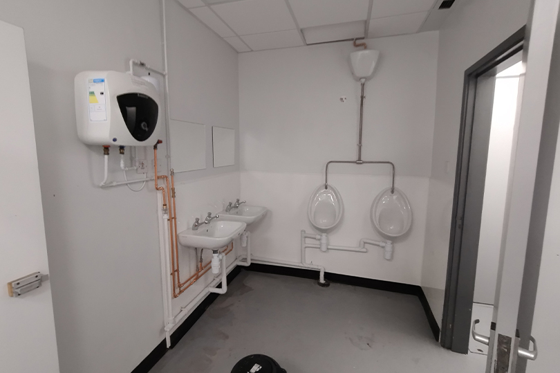 The project included a refurb of male and female staff toilets, including new urinals, back to wall toilets, wall hung basins and electric water heaters.