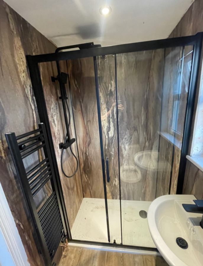 Located in the woods, close to the main building, we completed the install of 2 new bathrooms which included toilets, wall mounted basins, shower trays and enclosures.